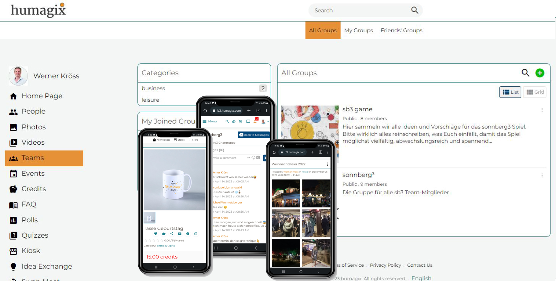 Mit humagix kommunizieren Sie mit Ihren Mitarbeitenden überall: unterwegs, im Home-Office, in der Produktion, an allen Standorten. Die Plattform funktioniert auf allen Devices: Smartphone, Desktop, Tablet oder Infoscreen hält Alle am Laufenden und im Austausch.